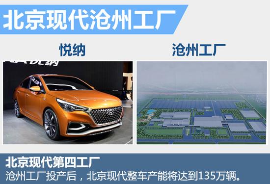 北京现代目前有三家工厂,总产能为105万辆,面对2016年112万辆的销量目标,提高产能推出新品,迫在眉睫。北京现代第四工厂--沧州工厂,将于今年10月竣工投产,届时北京现代整车产能将达到135万辆,可有效解决“产能提升”这一难题。值得一提的是,作为沧州工厂的首款量产车型,悦纳的亮相,标志着北京现代Verna、Sonata、Elantra三大品牌细分化布局的完成。