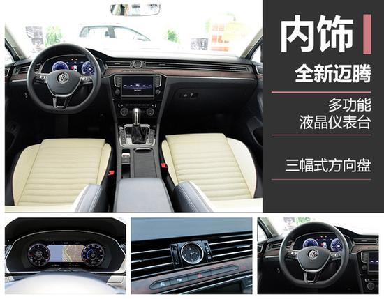 全新一代迈腾在内饰方面延续了一部分家族化设计的基础之上,对内饰进行全面升级与重新设计。与老款不同的是,新款将经典的圆形石英钟镶嵌在全新设计的一体式空调出风口上,彰显阔气与豪华。镀铬多功能按钮被安放在三幅式平底多功能方向盘的两侧,给予驾驶者不一样的触感,与不一样的体验。