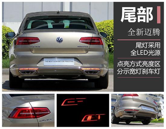 相对于现款迈腾来讲,全新一代迈腾基本保持了海外版本Passat B8的外观造型,延续了许多家族化的设计。而全新设计的LDE车头灯组匹配的是Dynamic Light Assist动态照明技术,前格栅与两侧大灯相连使车头看起来有种家族与创新相结合的感觉。再加上大量使用的横向线条,营造出低矮车身的感觉。